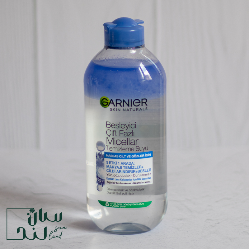 این میسلار واتر به طور خاص برای پوست های ظریف و حساس فرموله شده است. این پاک کننده ی میسلار، مناسب برای پاک کردن آرایش صورت، چشم ها و لب ها می باشد و حتی افراد با چشم های حساس و دارندگان لنز نیز می توانند با خیال راحت از آن استفاده کنند.میسلار دو فاز گارنیه با دارا بودن عصاره گل ذرت(blue centaury flower) دارای یک فاز آبی رنگ است.و علاوه بر آن، سرشار از روغن های مغذی می باشد که موجب تغذیه و تقویت پوست می شود.این پاک کننده، کامل و بدون خشک کردن پوست به آرامی آلودگی، ناخالصی ها و آرایش را در یک مرحله به سادگی از روی پوست پاک می کند. در فرمولاسیون این محصول هیچ ماده سختی مانند آب (سخت) و صابون وجود ندارد و پس از استفاده نیازی به شستشوی صورت نیست.